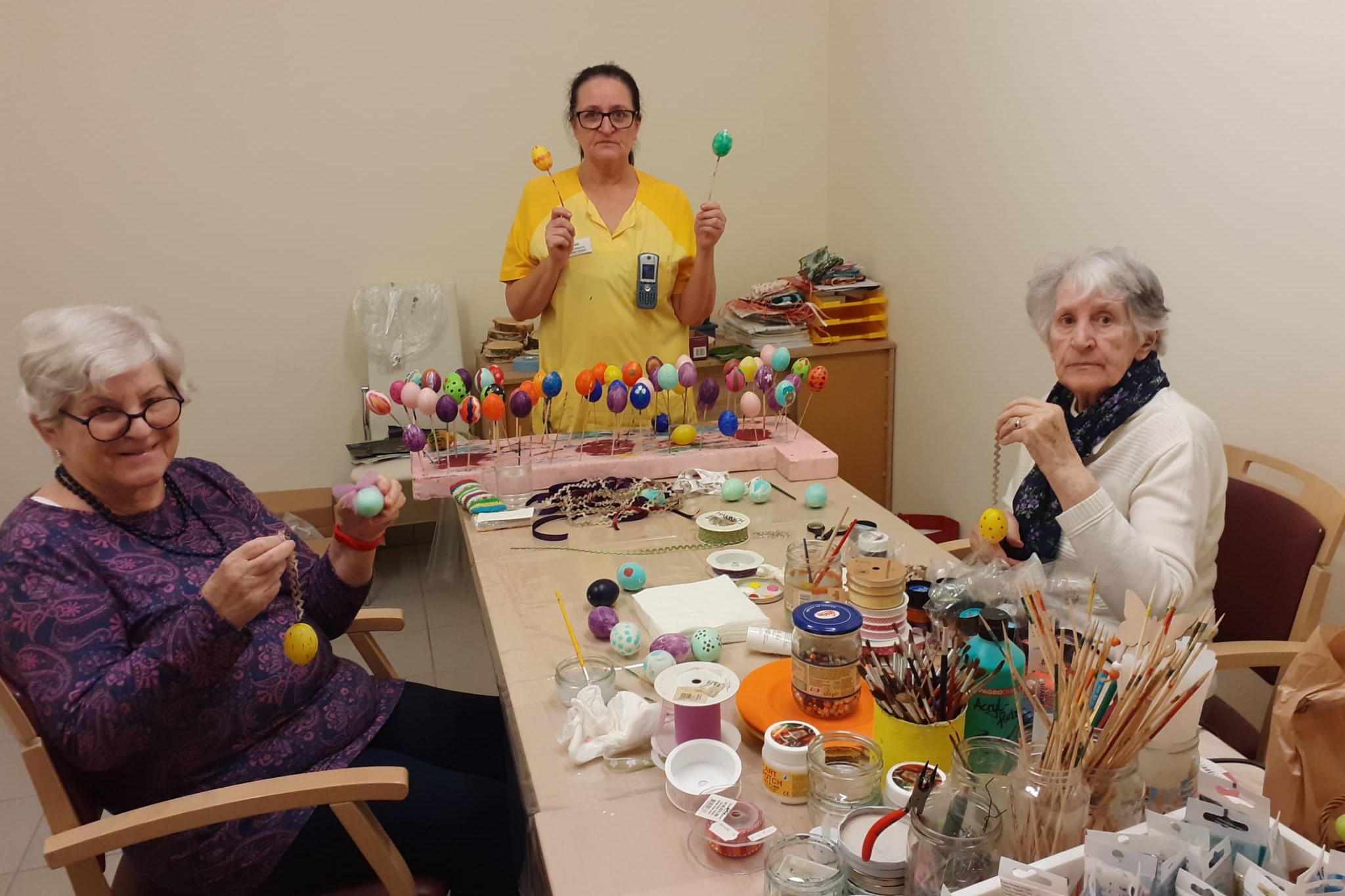 Im SeneCura Sozialzentrum Ternitz wurde in den letzten Tagen fleißig gewerkelt und dekoriert, denn die Bewohner:innen ließen ihrer Kreativität freien Lauf und gestalteten zauberhafte Osterdekorationen. Unter Anleitung des engagierten Betreuungsteams entstanden kunstvolle Hasen aus Holz, fröhliche Hühner, niedliche Eichhörnchen sowie liebevoll gestaltete Osterkränze und eine Fülle bunt bemalter Eier. Das gemeinsame Dekorieren war ein besonderes Highlight für viele und versetzte die Bewohner:innen in frühlingshafte Stimmung.