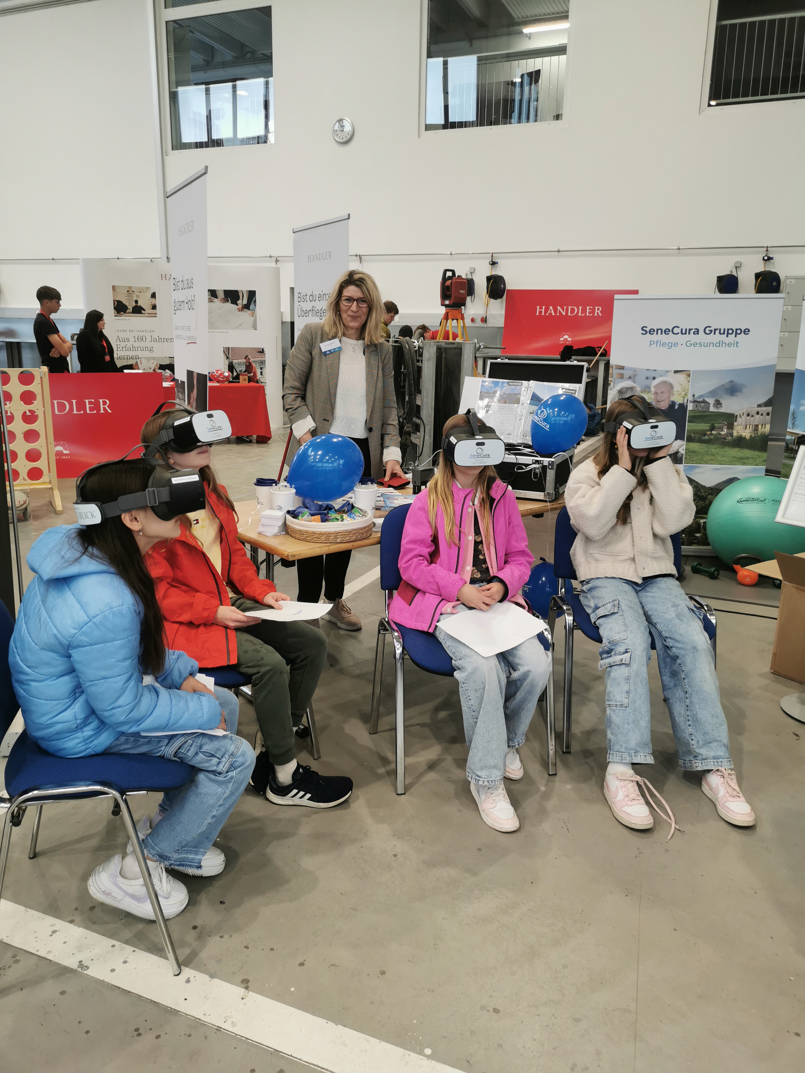 Am 03. Mai 2024 durfte das OptimaMed Ambulante Rehabilitationszentrum Wiener Neustadt gemeinsam mit SeneCura Sozialzentrum Kirchberg am Wechsel sowie SeneCura Sozialzentrum Ternitz auf der Berufsinformationsmesse in Krumbach einen Stand für mindestens 300 Schülerinnen und Schüler gestalten und die vielfältigen Berufe interaktiv präsentieren. Die Kaufmännische Direktion, Verena Rehak, sowie der leitende Physiotherapeut, Rico Döring, haben das OptimaMed Ambulante Rehabilitationszentrum Wiener Neustadt beim Stand bestens vertreten, während die Hausleitung, Elisabeth Windbichler sowie die Pflegedienstleitung, Gabriela Bhattarai, für das SeneCura Sozialzentrum Kirchberg am Wechsel und Ternitz den Interessenten bei der Berufsinformationsmesse in Krumbach zur Verfügung standen. Die interessierten Schüler:innen kamen aus Mittelschulen, Polytechnischen und höheren Schulen aus der Region. Bei OptimaMed konnten die Schüler:innen ihre Kraft, Beweglichkeit und ihren Gleichgewichtssinn testen, während das Senecura Sozialzentren mittels der VR-Brillen auf hochgelegen Schipisten und auf romantische Waldspaziergänge entführte. Die Berufsinformationsmesse war eine wertvolle Möglichkeit Talente zu entdecken, eventuelle Kandidatinnen und Kandidaten kennenzulernen und das Engagement der Firma durch den Messestand zu verdeutlichen.