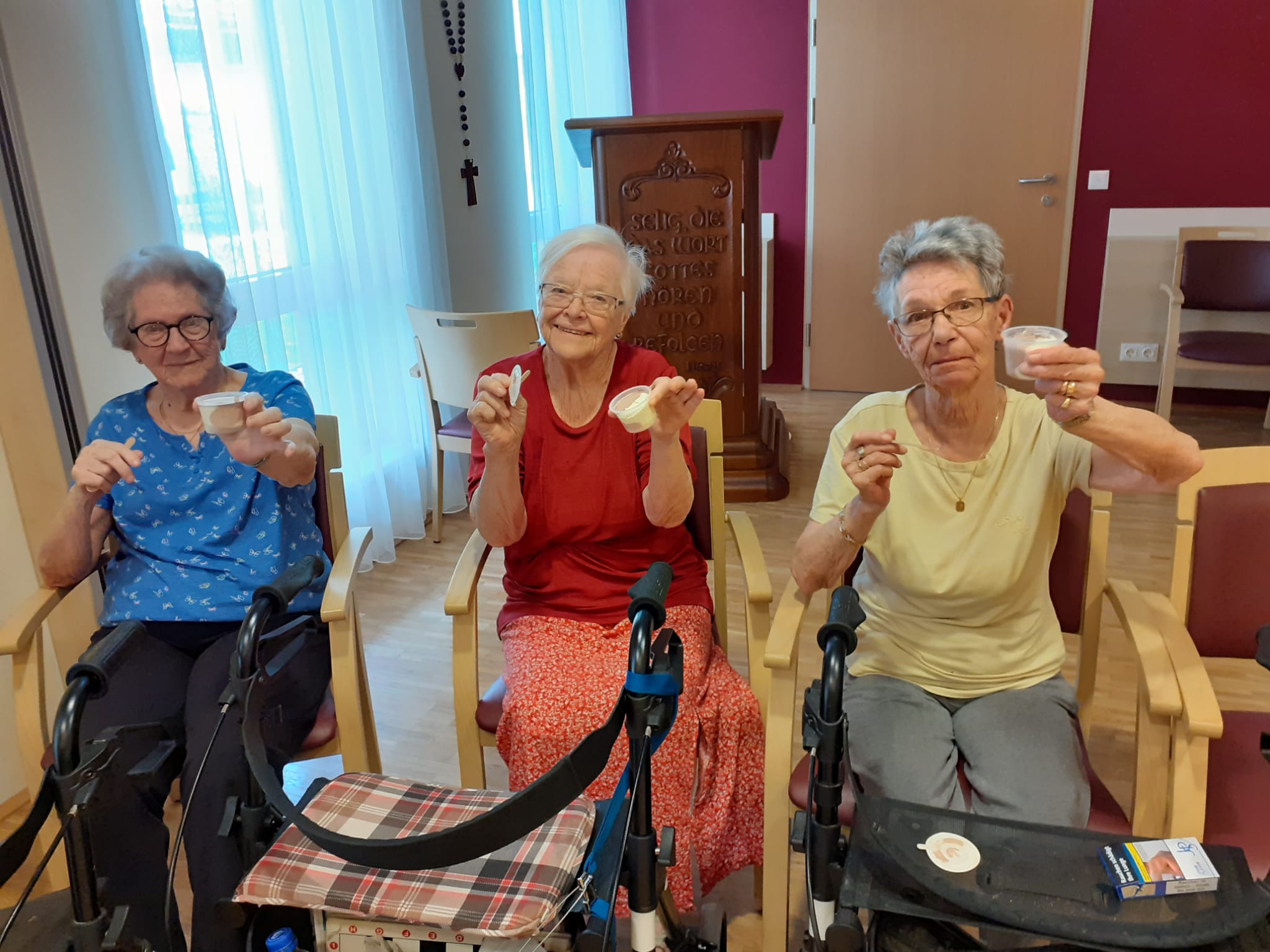 Im SeneCura Sozialzentrum Ternitz gab es letztens an einem üblichen Vormittag eine Rätselrunde, bei der über Eis gesprochen wurde. Die Bewohner:innen diskutierten darüber woher es denn eigentlich kommt, wie es zubereitet wird und welches Eis wohl das Beste ist. Aufgrund der intensiven Eis-Diskussion, die den Hunger auf ein erfrischendes Eis verstärken ließ, stand am Nachmittag auf dem Aktivitätenplan „Eis essen“! Die Bewohner:innen freuten sich sehr auf die süße Erfrischung und genossen ihr Eis in vollen Zügen.