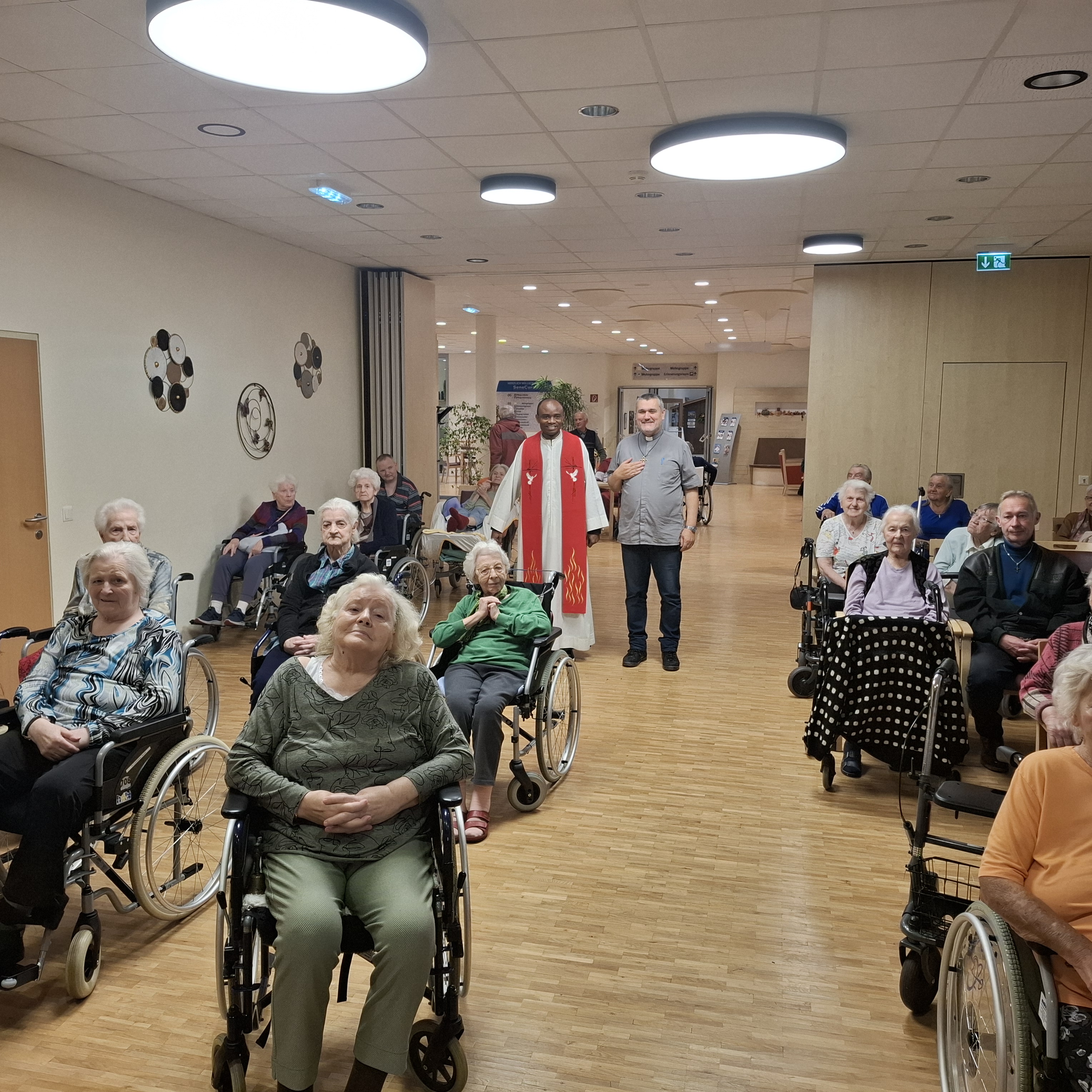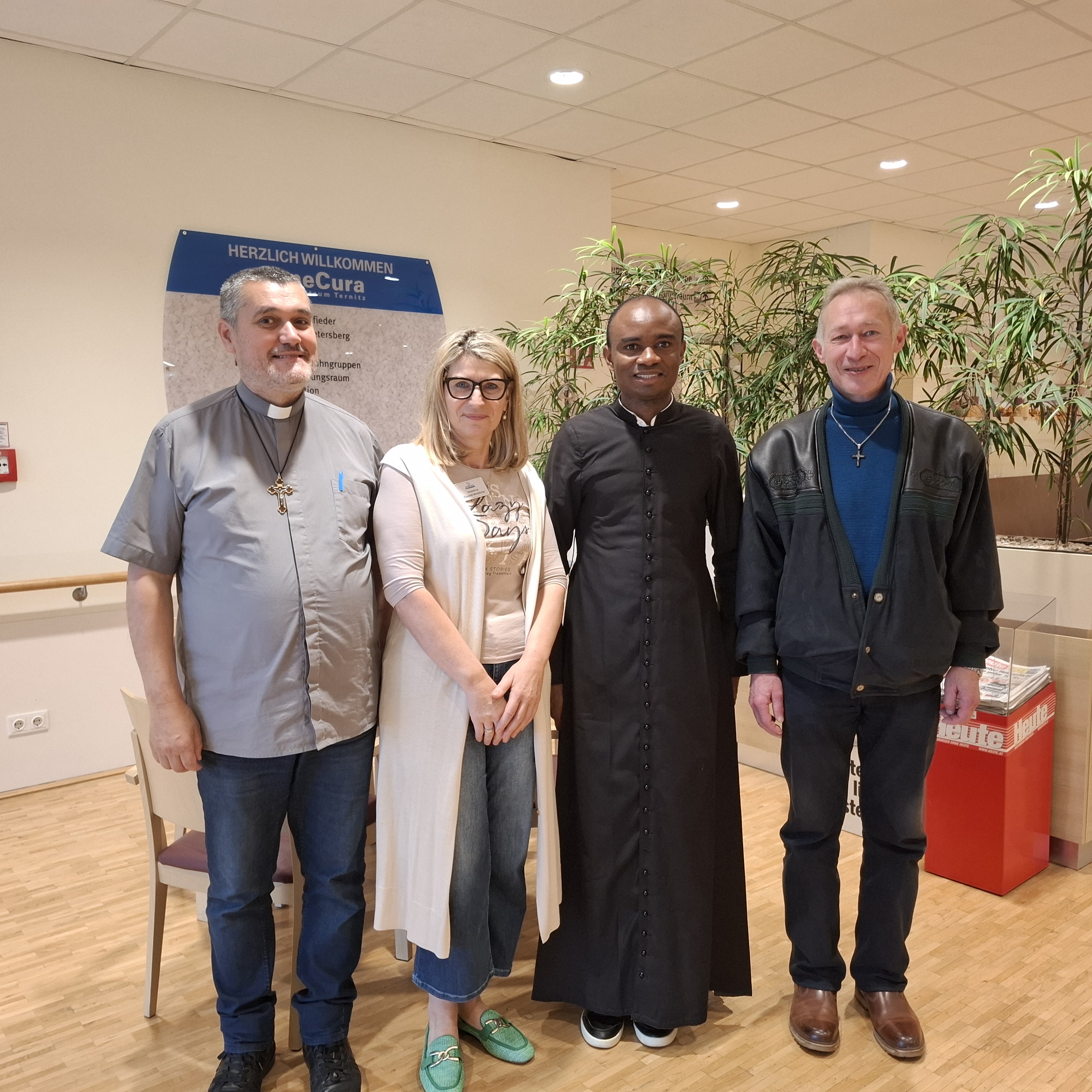 Im SeneCura Sozialzentrum Ternitz fand kürzlich eine besondere heilige Messe statt, denn zum ersten Mal zelebrierte der neue Kaplan Herr Aristides aus Kamerun den Gottesdienst im Haus. Die Bewohner:innen freuten sich sehr über seinen Besuch und die herzlichen Worte, mit denen er die Messe gestaltete. Künftig wird Herr Aristides öfter im Sozialzentrum die Gottesdienste feiern – eine wertvolle Bereicherung für die Bewohner:innen des Hauses.